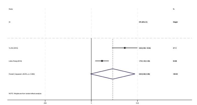 Two reviewers independently screened titles/abstracts and full texts using EndNote. Discrepancies were resolved via discussion or consultation with a third reviewer. Data on study characteristics, patient demographics, outcomes, and treatments were extracted using a standardized form. Quality Assessment NStudy quality was evaluated using the NOS (0-9 scale). Scores ≥6 indicated high quality. N Statistical Analysis STATA 15.1 was used to pool hazard ratios (HRs) with 95% CIs. I Heterogeniety was assessed via ²and Cochran's Qtests (I²> 50% or p< 0>