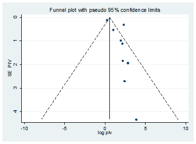 Fig 7. Funnel plot to test the publication bias in 11 studies with 95% Confidence limits.