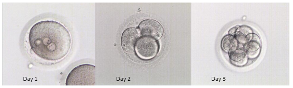 Photo 1: Development stages of transferred embryo from Day 1 to Day 3