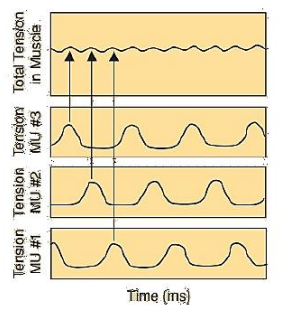 Figure 6 Summation of tension in motor units (MU) during asynchronous recruitment.