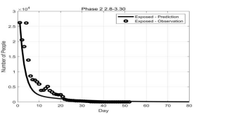 Figure 6: Result of curve fitting for the exposed E(t) in Phase 2 (2020.2.8 - 2020.3.30)