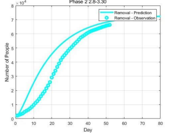 Figure 11: Result of curve fitting for the removal R(t) in Phase 3 (2020.3.31-2020.5.16)