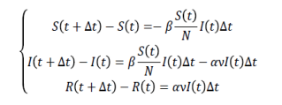 When Δt→0, the model can be described by set of kinetic equation15 (ODEs), and the final differential equation set of the SIR model is obtained as follows.