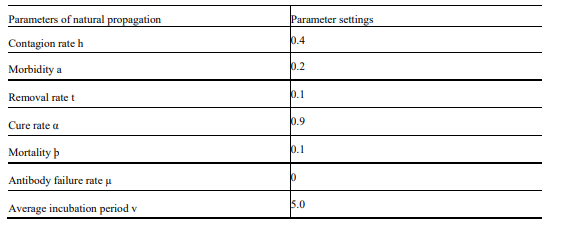 Table 4: Parameter setting of natural propagation in the SEIRsimulation