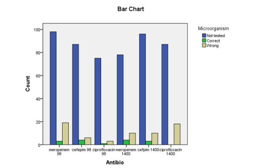 The antibiotic prescribed for 213 (35.2%) patients was meropenem, for 270 cases (34.2%) was cefepime, and for 187 ones (30.6%) was ciprofloxacin. The microorganism was correct in 2.5% of patients, for 10.9% of the cases was wrong and 86.6% of the cases were no tested.