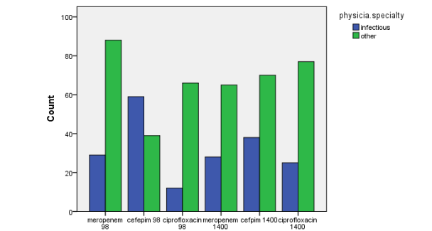 In the case of 31.6% of cases, prescribing physician’s specialty major was infectious diseases (Table 2).