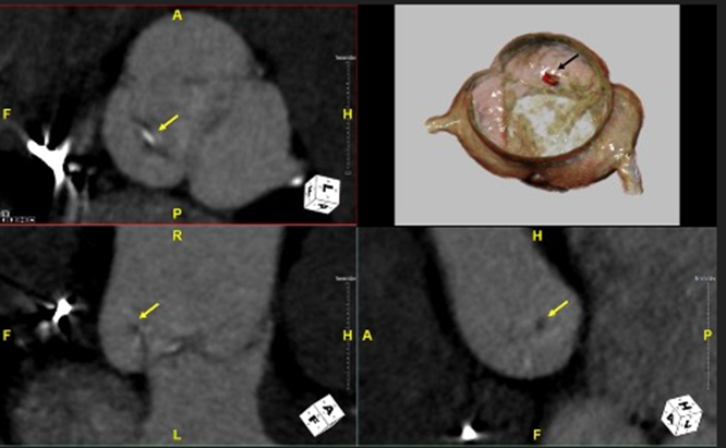 Together, this case illustrates how multimodality imaging—including cardiac CTA, 3D multiplanar TEE, and CT–TEE fusion—can expand the diagnostic armamentarium for embolic stroke evaluation, particularly when very small valvular tumors are involved. Early recognition and surgical removal of papillary fibroelastoma provide effective secondary stroke prevention and should be strongly considered when noninvasive imaging reveals even subtle valvular excrescences consistent with PFE.