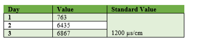 From the table 4, most of the EC value show higher than the standard value. The higher value is 6867 µs/cm.