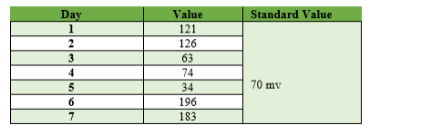 Figure 5: - Comparison of EMF value with standard range at different days after treatment
