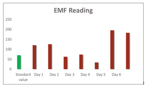 From the table 5, most of the EMF values are near to the standard range which is (34-121). But some time it shows higher value.