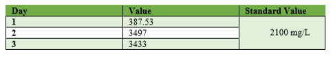 From the table 6, all of the TDS value of waste water in different days shows good value. To maintain the optimum value there needs to maintain the constant ratio of chemicals continuously in the first tank.