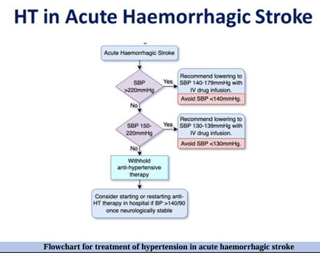 Current recommendations for the management of hypertension in acute stroke reflect the need for a tailored approach. The evidence in favour of treating hypertension acutely in intracerebral haemorrhage is not as strong as we would wish, but is probably strong enough to consider those with a SBP of 150-220 mmHg for urgent treatment within 6 hours of symptom onset, using a locally agreed protocol for BP lowering, aiming to achieve a systolic BP between 130 139 mmHg within one hour and sustained for at least 7 days [7] (Figure 2). By contrast the only certainty for BP lowering after acute ischaemic stroke is a BP target <185>