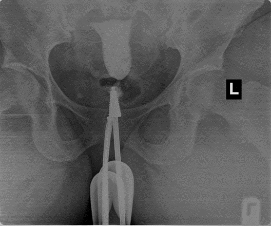 The patient was made to lie supine on the x-ray table and a scout image of the pelvis was taken. Thereafter, the patient was placed in a lithotomy position; the perineum was cleansed with povidone-iodine solution and draped with sterile towels. A speculum was inserted into the vagina; the cervix was localized and cleansed with povidone-iodine solution. A Leech-Wilkinson cannula was coupled to a 20 ml syringe filled with contrast medium (urograffin), air bubbles were expelled from the syringe. The anterior lip of the cervix was gently grasped with a vulsellum forceps and the cannula was inserted into the cervical canal. Contrast medium was injected slowly and images were taken with filling up of the uterine cavity and tubal spillage. The examination was done using SHIMADZU diagnostic x-ray equipment (Model No: 21400BZZ00192000), manufactured in January, 2014. Images were processed using iCRco digitizer and printer. The images were reported by two consultant radiologists; the findings were recorded on the data sheet, and analysed using the statistical package for Social Sciences (SPSS) version 22.