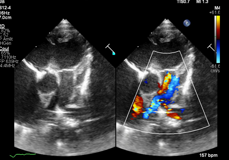 - Major defect in atrioventricular valve with torrential regurgitation