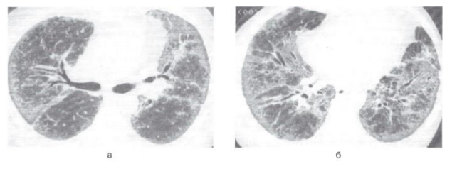 Not all the alveoli in the "frosted glass" zone are completely filled with liquid, but gas exchange is difficult, so it becomes difficult to breathe.