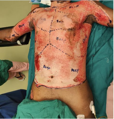 This study was conducted in the Department of Plastic Surgery in a tertiary care centre in South India. Informed consent was taken from all participants included in the study. Here we studied the use of Bates-Jenson Wound Assessment Tool in the management of wounds. A 42-year-old male patient with no known comorbidities, presented with alleged history of acute thermal burns due to petroleum fire outside his residence who was admitted and treated in the Burns Ward. Wound assessment was done using BJWAT Chart on admission and weekly after start of therapy for 4 weeks. Following are the details and guidelines followed while using