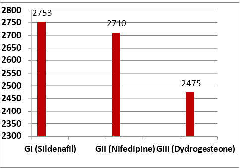 Patients And Methds: the study was conducted on 300 pregnant women who randomly divided into three groups: Group I included 100 cases received Sildenafil citrate (Respatio tablet 20mg twice daily orally), Group II included 100 cases received Nifedipine (Epilat retard tablets 20mg twice daily orally) and Group III included 100 pregnant women received dydrogesreone 10 mg (Duphaston) twice daily orally.