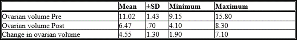 Table 4: Description of ovarian volume before, after and the change after intervention among cases group