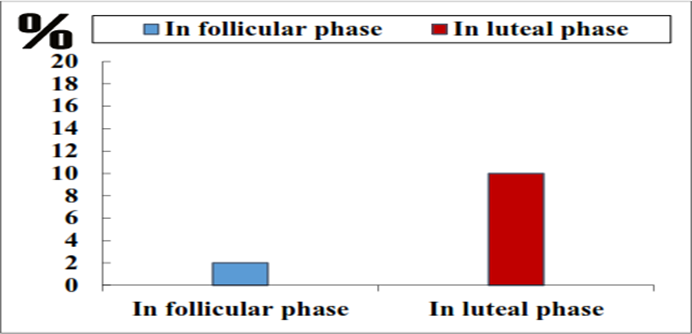 At one time women were admitted into the study, they were asked about their current phase of the cycle, by calculating backward from the starting day of the next expected period. PMDD was diagnosed by the daily symptom report [10].