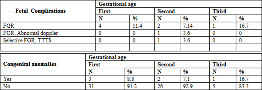 Table.6: Which group of gestational age at infection was more prone to fetal complications