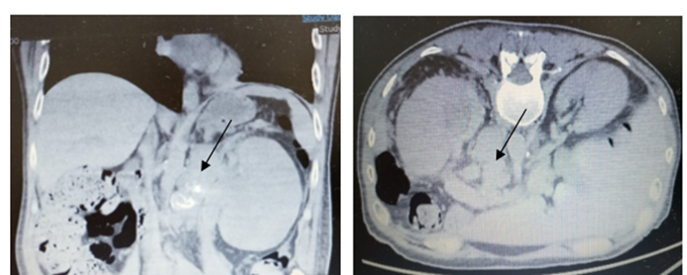The patient was admitted under Urology care, and CT scan of thorax, abdomen and pelvis (Figure.2) was carried out.