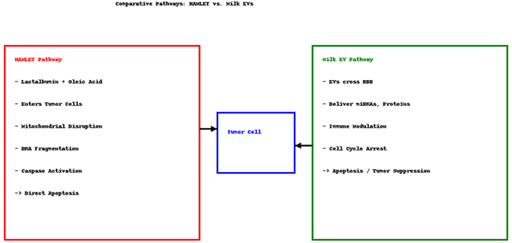Figure 2: Comparative Pathways: HAMLET vs. Milk EVs in Tumor Suppression