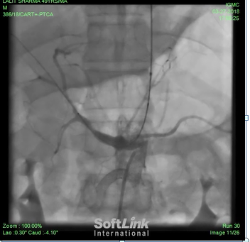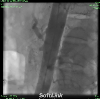 Figure 8: Stenting of celiac artery in the same patient of AMI.